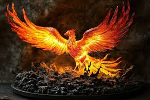 Bilden: Fågel Fenix reser sig ur askan